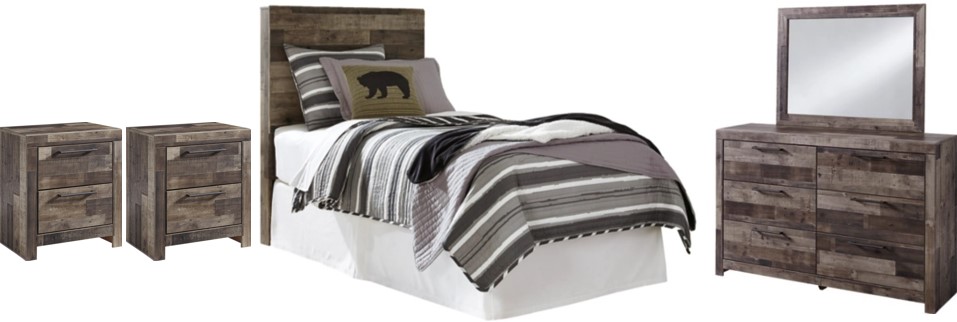 When you want a bedroom that makes a bold statement, Derekson is for you. Rustic butcher block finish is tastefully roughhewn, with appealing color variations and imperfections. The substantial design is hearty and robust, perfect if you love the feel of modern farmhouse living.