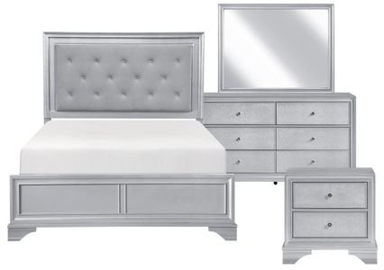The suite features sophisticated details like embossed-look drawer fronts, dovetail construction, and chic chrome knobs inset with acrylic diamonds. Whether you are maximizing storage space with the 6-drawer dresser or adding depth with the sleek framed mirror, this set offers a durable, upscale foundation for any master suite. Combining ambient lighting with shimmering finishes, this collection creates a sophisticated sanctuary that seamlessly merges high-end interior design with essential everyday functionalityRead More