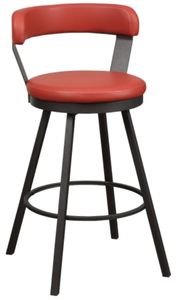 Perfectly styled for your casual dining space is the Appert Collection. This 29-inch pub height chair offering features a dark gray metal base that serves to support the red faux leather round swivel seat.Read More