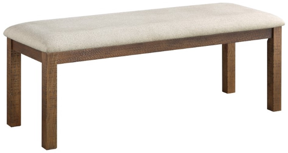 With its transitional style the Bonner collection presents as the perfect addition to your casual dining room. Solid pine lays a foundation for the acacia veneer of the group, with a brown finish lending highlight to the distinct veneer pattern. This wood-framed bench features a beige-hued fabric seat.Read More