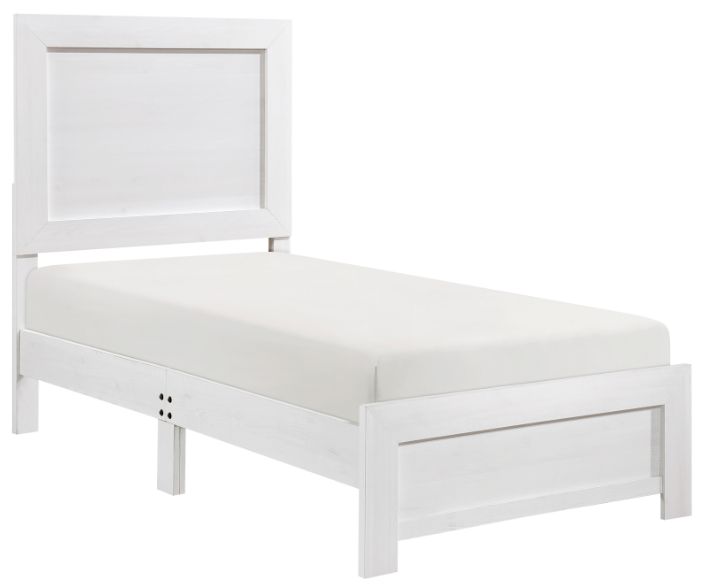 Modern lines and rustic styling are paired to create the look of the Corbin Collection. The 3D printed paper veneer’s texture is highlighted by a white finish for a realistic wood look. Subtle framing defines the profile of the twin panel headboard and footboard, further lending to the unfettered design of the collection.Read More