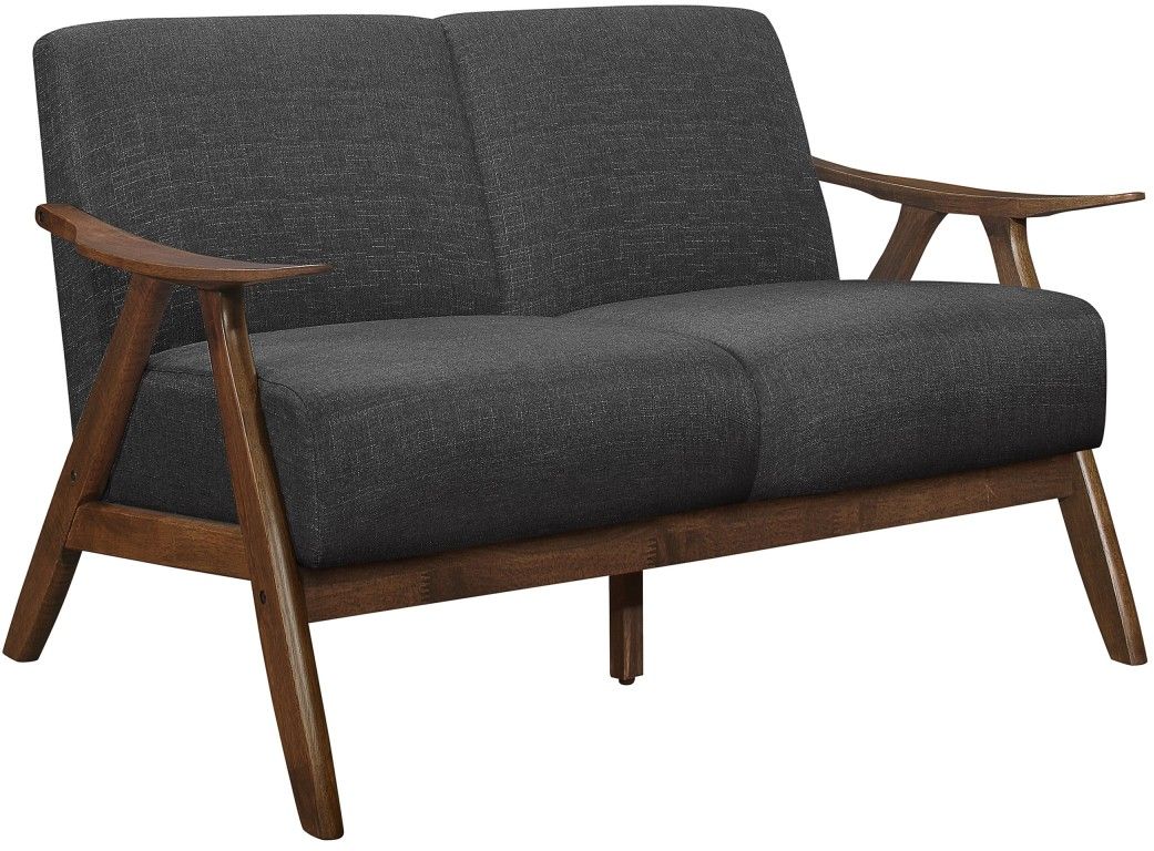 The retro-inspired wood framing of the Damala collection will perfectly accent your modern home décor. Subtle contouring to the love seat’s wood frame is finished in walnut, presenting as a classic complement to the dark gray fabric that covers the padded love seat’s seat and back.Read More