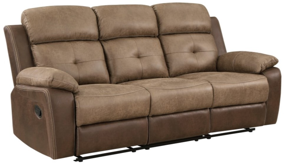 The sofa has dual reclining ends as well as manual motion mechanisms which operate with the pull of a side-mounted tab, that once engaged, takes you from seated to reclined in an easy motion.