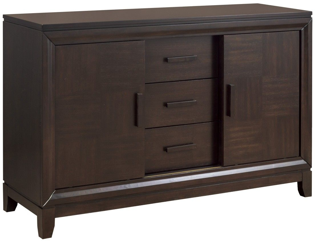 Subtle contemporary design is called into play for the styling of the Kavanaugh Collection. Lending a distinct look to the server is a classic checkerboard white oak veneer pattern which is highlighted by a dark brown, with gray undertone finish.Read More