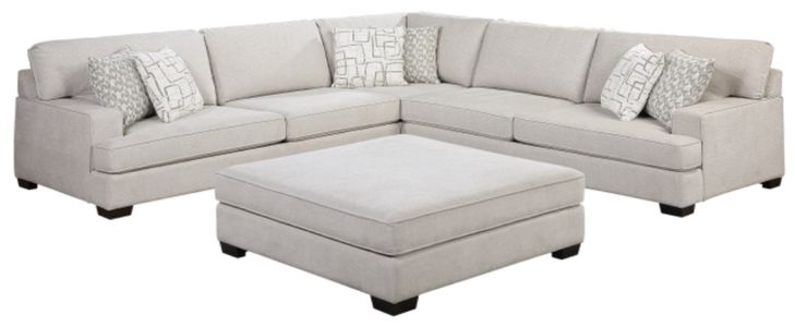 Maximize comfort, flexibility, and seating capacity with this expansive 4-piece sectional sofa with ottoman, upholstered in a soft, light-toned chenille fabric. This versatile set creates a generous L-shape and includes the left side facing 2-seater, corner seat, right side facing 2-seater, and a large matching ottoman, all built for durability on a sturdy solid wood and plywood frame.Read More
