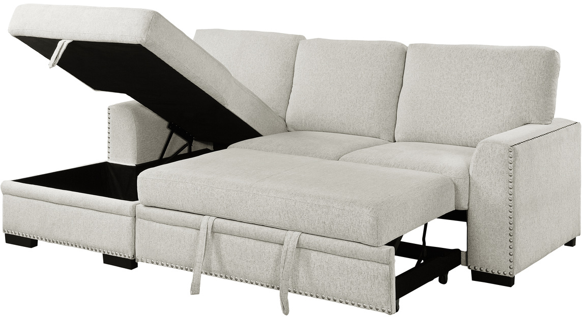 The Homelegance® Morelia 2-Piece Sectional Sofa Set features a pull out bed, nailhead trim, and left chaise with hidden storage.Read More