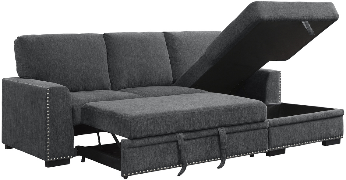 The Homelegance® Morelia 2-Piece Sectional Sofa Set features a pull out bed, nailhead trim, and right chaise with hidden storage.Read More