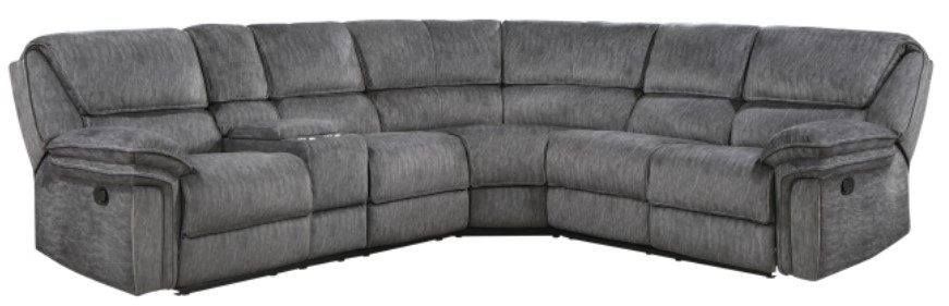 The left side seating of the sectional features a center console, its cupholders and hidden storage providing functional convenience to the group. The end chairs of the sectional feature manual-motion mechanisms that are operate with the pull of a side-mounted tab, taking you from seated to reclined in an easy motion.