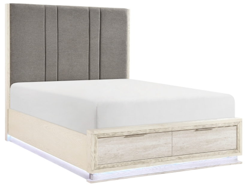 Refresh your bedroom with this eastern king platform bed finished in beige and gray. Integrated footboard storage offers convenient space for blankets and essentials. The platform support removes the need for a box spring, creating a tidy, functional sleeping area that promotes comfort, organization, and ease for everyday living and nightly rest.Read More