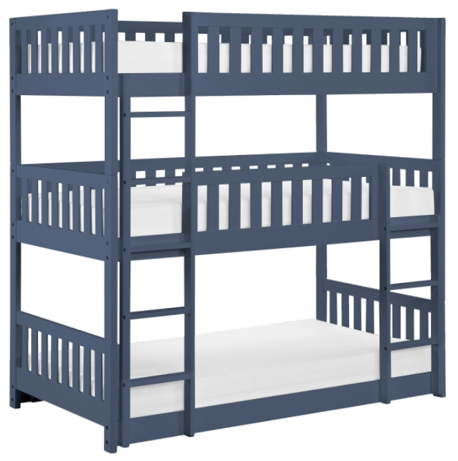 Maximize your bedroom's potential with this innovative triple bunk bed, the ultimate solution for large families or frequent sleepovers. Crafted from high-quality wood and engineered wood with a protective UV-finished veneer, this durable frame features a striking blue finish that resists fading. The clever vertical design saves valuable floor space while providing three secure sleeping areas.Read More