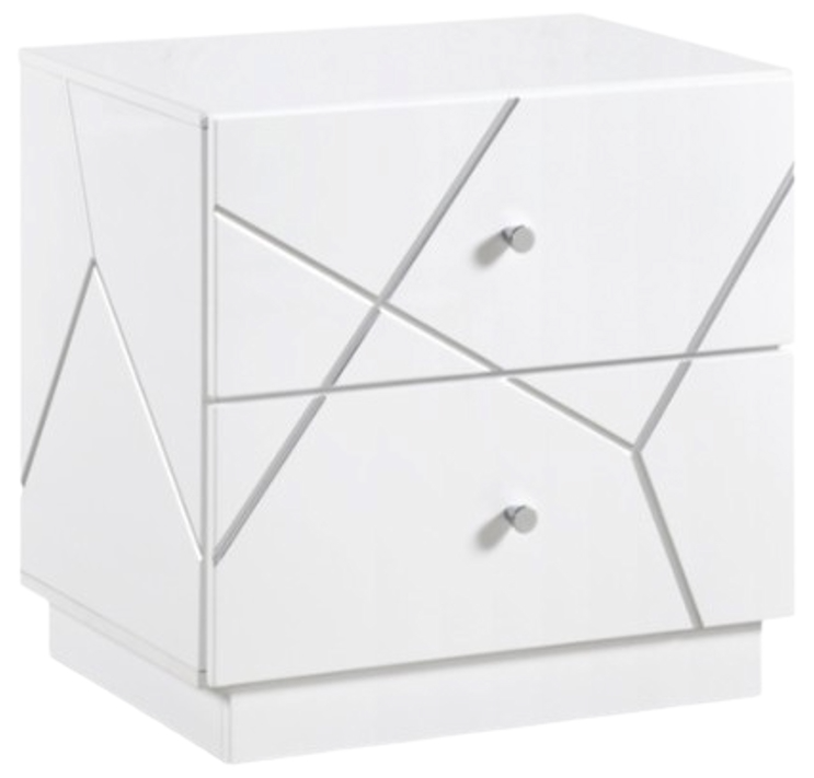Complete your bedroom suite with this contemporary nightstand, the perfect companion to your bed. Constructed from a sturdy blend of wood and engineered wood, this piece is finished in a bright, clean white that brings a refreshing, modern look to any space. This piece features two spacious storage drawers, each accented with the same striking.Read More