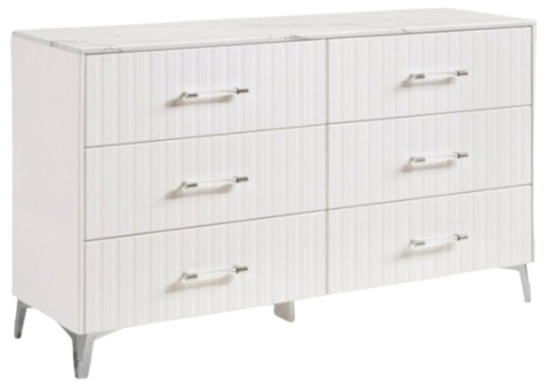Elevate your master suite with this stunning modern white dresser, a perfect fusion of high-fashion glamour and superior organization. The crisp white finish is beautifully crowned by a faux marble laminated top, offering a luxurious and durable surface for your favorite decor.Read More