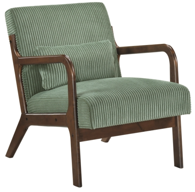Introduce sophisticated mid-century style to your living room or reading nook with this striking accent chair. Featuring a robust solid wood frame, the smooth brown finished arms and legs provide sharp, clean lines and reliable support. Upholstered in plush, textured corduroy fabric, this chair offers exceptional comfort and visual depth.Read More