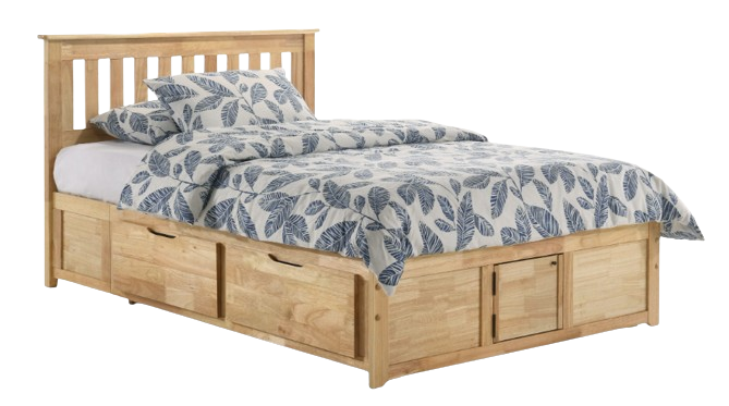 As an alternative to a basic footboard, the drawer pedestal bed comes complete with storage drawers, rails and integrated footboard.