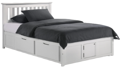 As an alternative to a basic footboard, the drawer pedestal bed comes complete with storage drawers, rails and integrated footboard.
